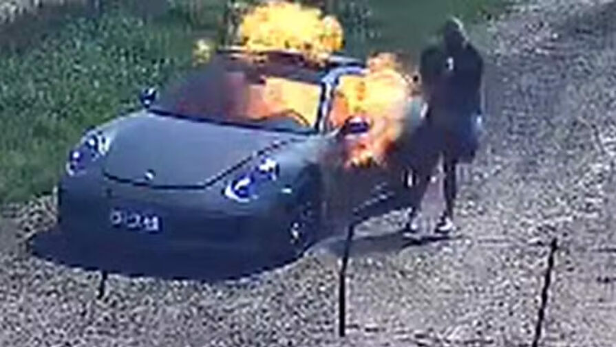 Мужчина попал на камеру, когда поджигал свой Porsche, чтобы получить страховку