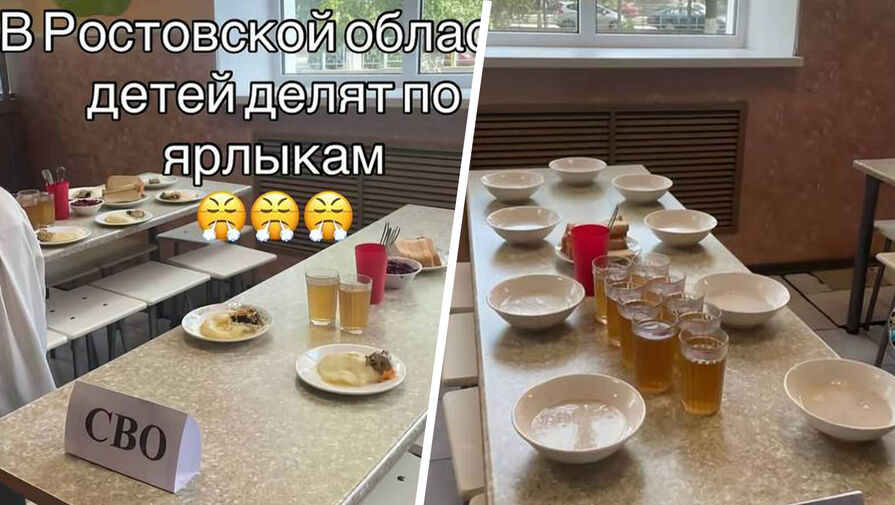 По словам Мизулиной, в соцсетях распространяются фото из школы, расположенной в городе Азове. На кадрах видно, что на столах в столовой, где должны сидеть дети, стоят распечатанные таблички с надписями «малоимущие» и «СВО».