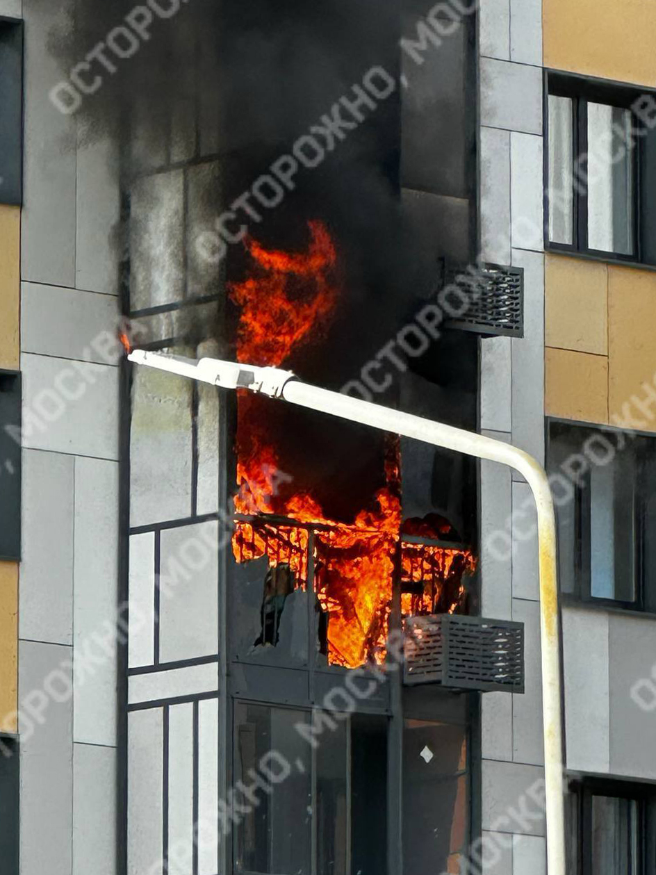 Пресс-служба столичного управления МЧС РФ в Telegram-канале написала, что к тушению пожара привлекли 39 специалистов и девять единиц техники. Предварительно, пламя распространилось на кухне и частично на балконе. К текущему моменту огнеборцы полностью ликвидировали возгорание.