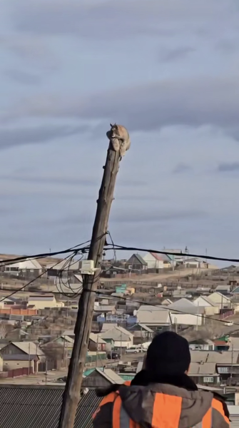 «Десятки жителей поселка <...> собрались у столба и организовали настоящую операцию по спасению рыси: подогнали к опоре кран и попытались забрать рысь вручную. Гордое животное не оценило попытку и спустилось само», — говорится в публикации.