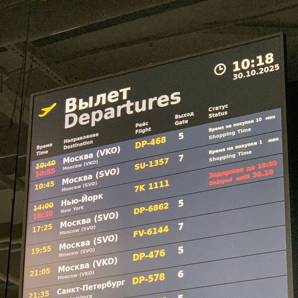 На табло саратовского аэропорта «Гагарин» около десяти утра 30 октября заметили международный рейс в Нью-Йорк (США). Об этом сообщает «Глушь медиа».