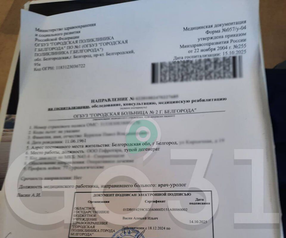 В Белгороде пациента назвали тупым дегенератом в медицинском документе