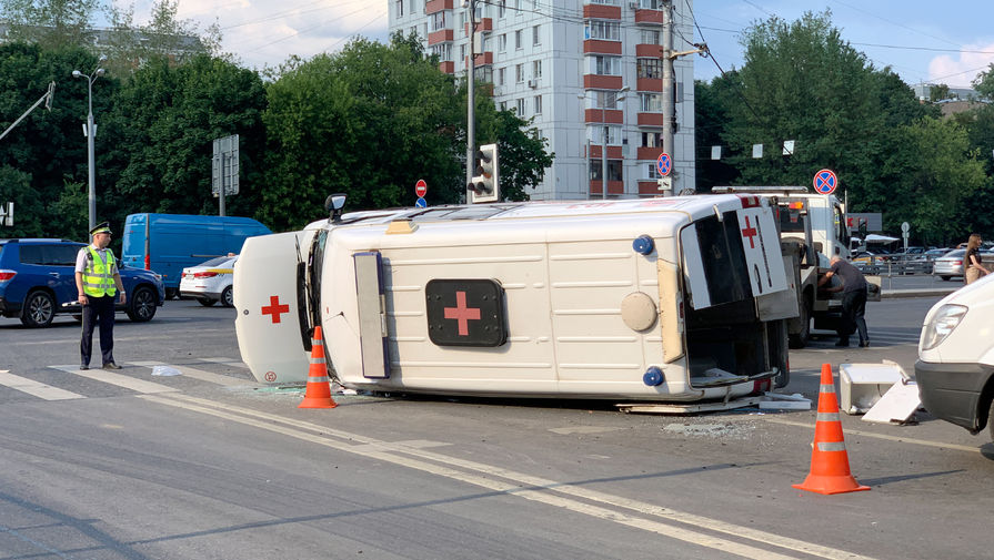 Ранее в Москве грузовик влетел в машину скорой помощи.