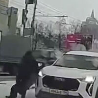 По данным Telegram-канала, водитель двигался по встречной полосе и столкнул ребенка. На кадрах с места инцидента заметно, как взрослый со школьницей выходит на дорогу, но спустя пару секунд машина задевает девочку и та падает на заснеженный асфальт. Сам водитель тем временем поехал дальше.