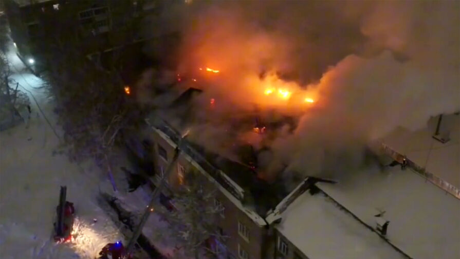 В Новосибирске горит административное трехэтажное здание