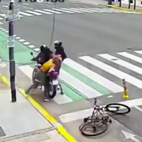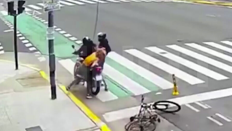 Инцидент произошел в Буэнос-Айресе. На опубликованном в сети видео видно, что двое мужчин подъехали на перекрестке к блондинке, которая сидела на велосипеде, и вырвали у нее из рук телефон. Однако женщина не растерялась, вцепилась в одного из грабителей руками и скинула его с мотоцикла на асфальт. Преступник попытался вырваться, но россиянка крепко держала его за ногу. Позже на помощь женщине подоспели прохожие и автомобилисты.