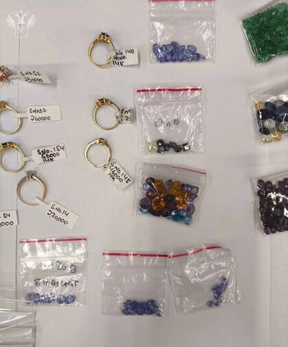 «Экспертиза установила, что украшения изготовлены из золотого сплава 750, 585 и 375 пробы, а драгоценные и полудрагоценные камни – это бриллианты, танзаниты, турмалины, топазы, кварцы, адуляры, бериллы, гранаты, корунды», — уточнили в ведомстве.