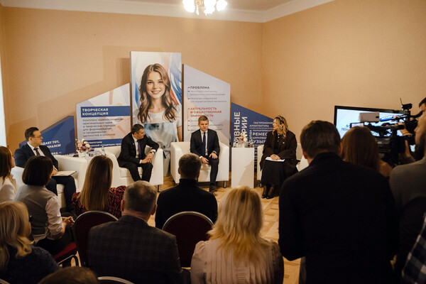 В рамках открытия в концертном зале прошла встреча с победителями и участниками грантовых конкурсов ПФКИ. Кроме того, что для развития социокультурного проектирования между Курской областью и ПФКИ было подписано соглашение. Документ подписали Хинштейн и Карманов.