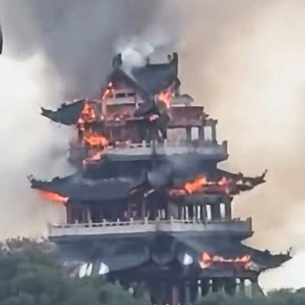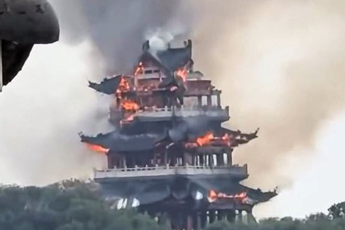 По информации издания, пожар произошел 12 ноября в провинции Цзянсу. Турист случайно поджог древний павильон Вэньчан на горе Фэнхуан благовониями и свечами.