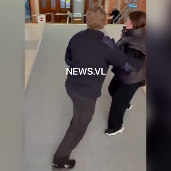 Канал опубликовал запись, на которой девушка и ее мать заходят в здание образовательного учреждения и начинают подниматься по лестнице, когда старшую женщину останавливает охранник. Мужчина тянет женщину за одежду, но когда она начинает кричать, останавливается.