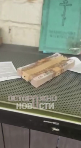 Предмет заметили на остановке на улице Гайдара. На кадрах заметно, что у пачки со сторублевыми купюрами есть небольшая прорезь для трубки. По данным Telegram-канала, на место прибыли силовики и проверяют, нет ли внутри взрывного устройства. Место оцепили.