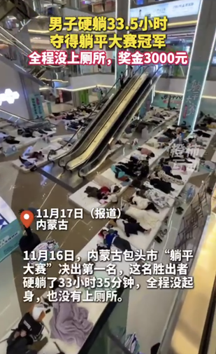 В Китае мужчина пролежал в подгузнике 33 часа и выиграл 3 тысячи юаней