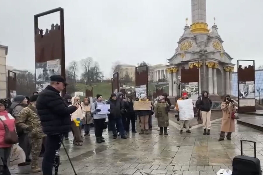 На Майдане в Киеве начались протесты, собравшиеся потребовали арестовать главу офиса президента Украины Андрея Ермака. Видео опубликовано в Telegram-канале издания «Страна.ua».