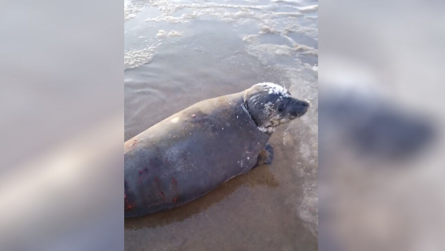 Животное с равномерным укусом с двух боков обнаружили у берега губы Лодейной. Сейчас жители ждут прибытия зоологов из команды по спасению морских млекопитающих на место происшествия и защищают тюленя от собак.