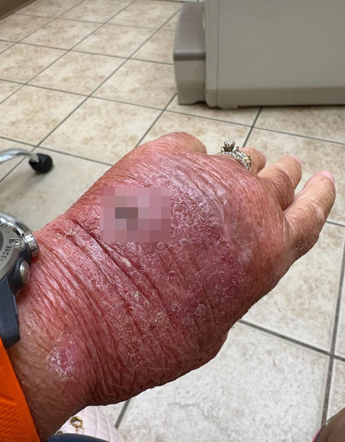 Однако спустя неделю она почувствовала ноющую боль в руке. Сняв повязку, Ховард обнаружила, что место вокруг пореза опухло и выглядит «плохо». После обращения в больницу ей назначили укол антибиотика, курс пероральных препаратов и специальный антибактериальный крем.