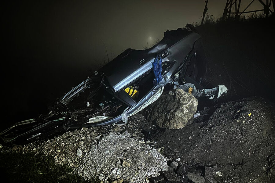 Машина получила серьезные повреждения, у нее отлетели колеса, переднюю часть смяло. Находились ли в салоне другие люди, не уточняется.