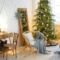 Она объяснила, что центральным элементом комнаты является елка, размер и форма которой должны соответствовать пространству. Если в помещении недостаточно места, то большое дерево стоит заменить на миниатюрные композиции из хвойных веток, украшенные лентами и гирляндами.
