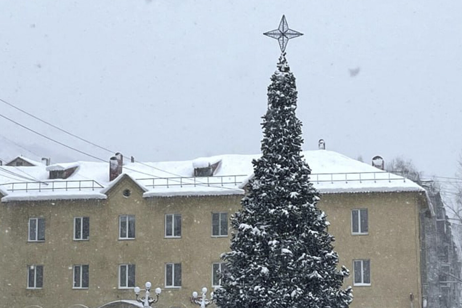 В Таштаголе Кемеровской области установили новогоднюю елку с четырехконечной звездой, похожей на крест. Фото опубликовал местный Telegram-канал «Новая Шория».