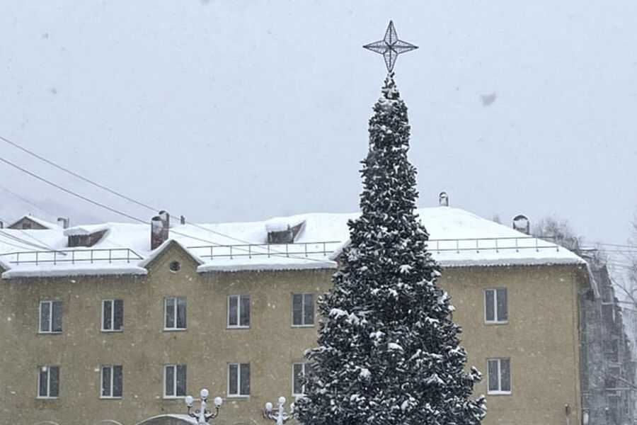 В Таштаголе установили новогоднюю елку с похожей на крест звездой
