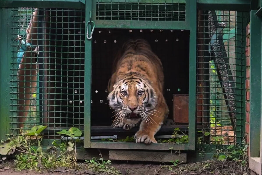 В Московский зоопарк прибыли две самки амурского тигра. Видео опубликовано в Telegram-канале учреждения.