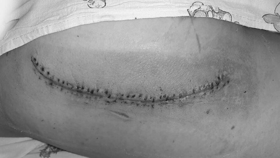 Стекло разбилось, и крупный осколок рассек мягкие ткани, оставив рану длиной 25 см и шириной 4 см. В мышцы вонзилось множество мелких осколков. Медики приняли решение о проведении хирургического вмешательства.
