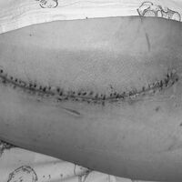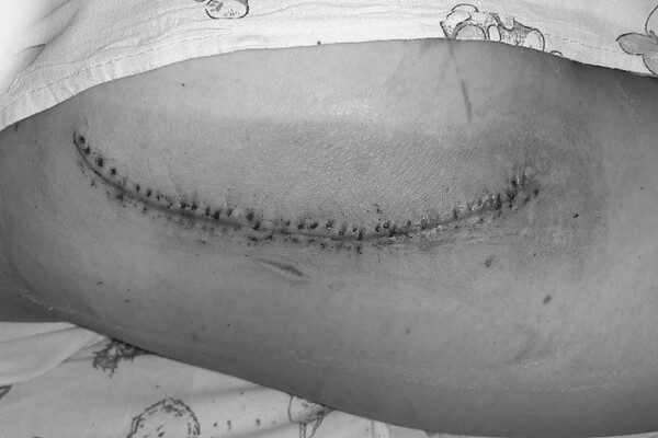 Стекло разбилось, и крупный осколок рассек мягкие ткани, оставив рану длиной 25 см и шириной 4 см. В мышцы вонзилось множество мелких осколков. Медики приняли решение о проведении хирургического вмешательства.