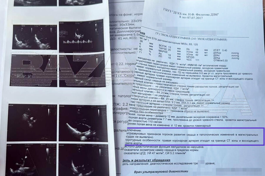 Не поверив этому заключению, родители повели дочь на перепроверку в Детскую городскую клиническую больницу №  13 имени Филатова. Там специалисты не обнаружили никаких патологий. Для окончательного вердикта семья обратилась в Научный центр сердечно-сосудистой хирургии имени Бакулева, где также подтвердили абсолютное здоровье девочки.