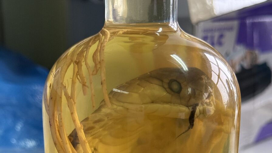 Стеклянную бутылку с надписью «Змеиное вино» нашли при досмотре у туристки в аэропорту Барнаула. Внутри была заспиртованная змея и корень растения.