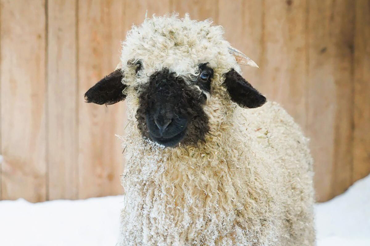 Уточняется, что новорожденный ягненок — детеныш валлийской овцы, и имеет характерный контрастный окрас: у животного белая шерсть, черная мордочка и темные ножки.
