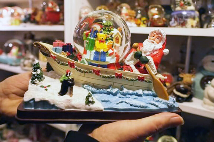 В коллекции представлены как классические, так и необычные экземпляры: снежный шар в форме телефонного аппарата Coca-Cola, композиция с изображением крушения «Титаника», а также шар с Санта-Клаусом, управляющим вертолетом. Отдельное место занимают шары с персонажами и сценами из популярных франшиз — «Звездные войны», «Гарри Поттер» и «Властелин колец».
