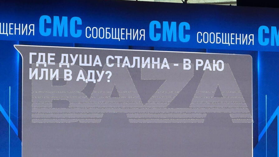 До этого на прямой линии с Владимиром Путиным были показаны вопросы, которые отправлялись в студию. Среди них был вопрос: «Где душа Сталина – в раю или аду?»