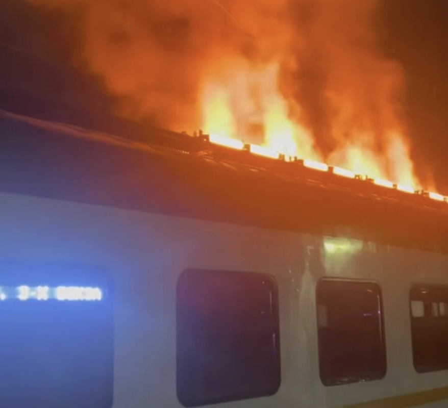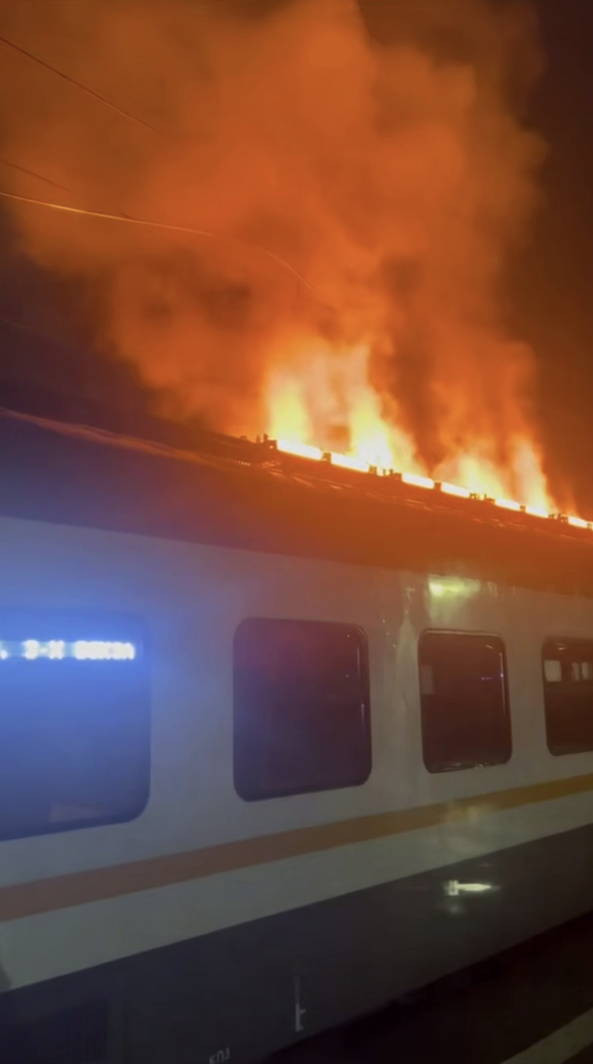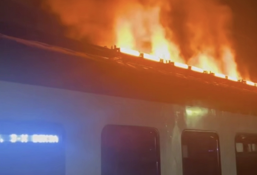 В Подмосковье произошел пожар в электричке, направлявшейся в сторону Москвы. Кадры с горящим вагоном опубликовал Telegram-канал «112».