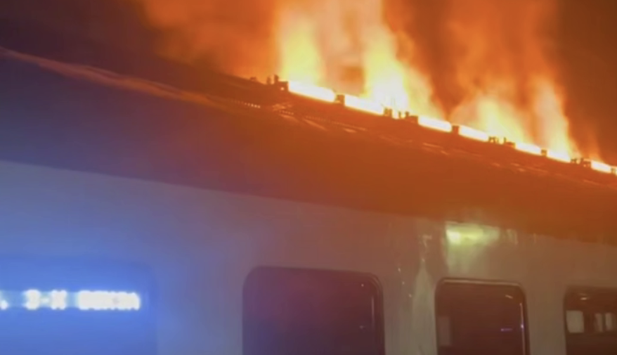 В Подмосковье произошел пожар в электричке, направлявшейся в сторону Москвы. Кадры с горящим вагоном опубликовал Telegram-канал «112».