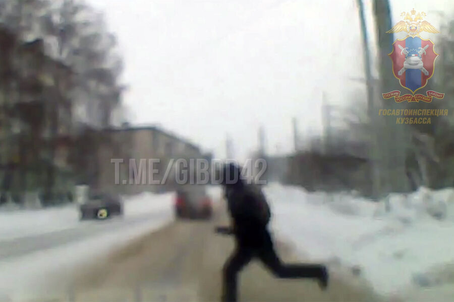 Машина сбила десятилетнего школьника, перебегавшего дорогу в Кузбассе, и попала на видео