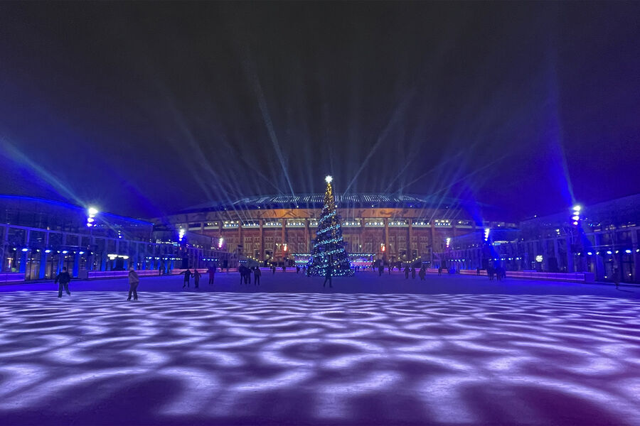 Каток в «Лужниках» объединил лед, свет и 3D-шоу на фасаде