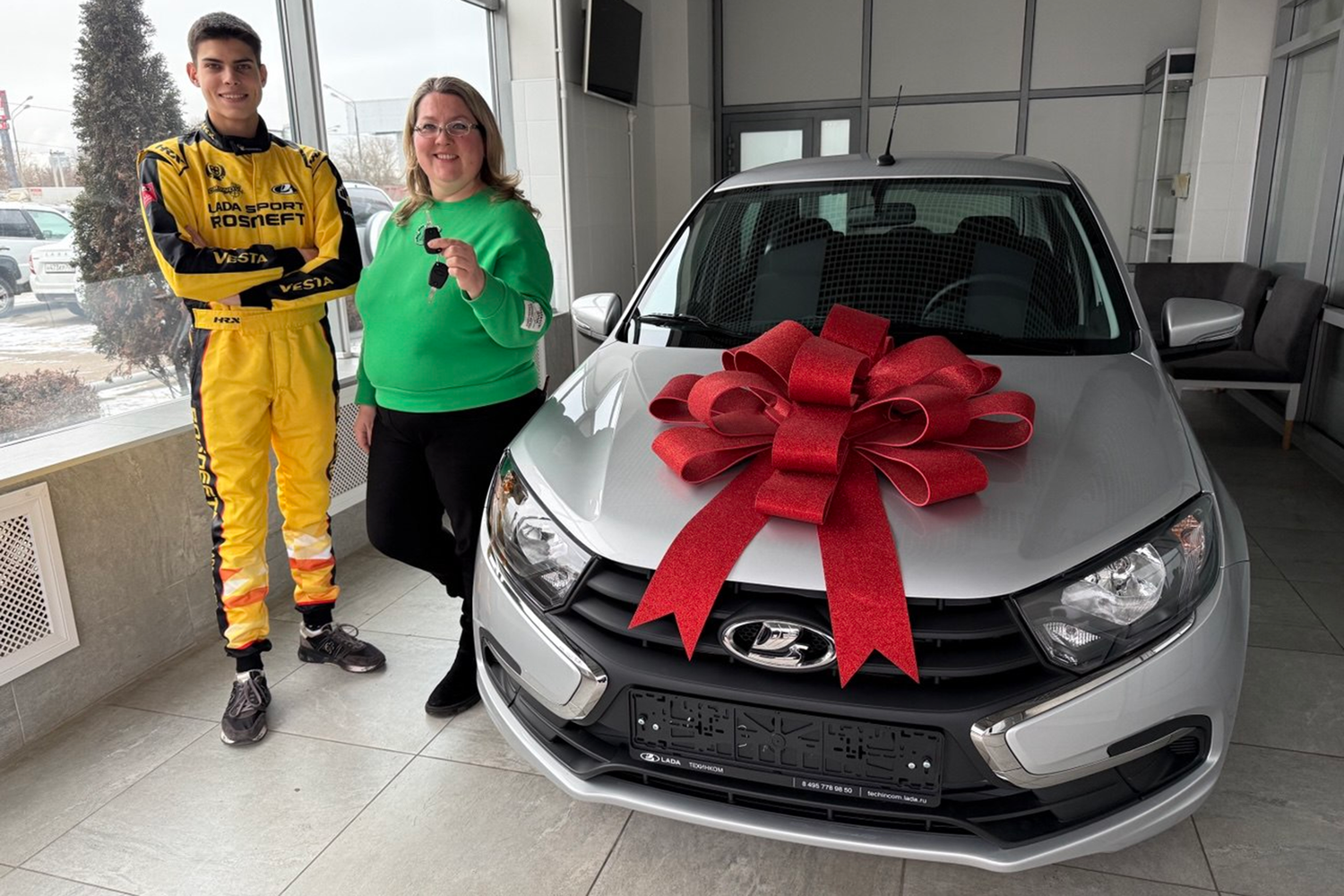 Обладателем автомобиля стала Мария Борисова из Москвы. Ключи от автомобиля ей вручил пилот гоночной команды Lada Sport Rosneft Ярослав Шевырталов.