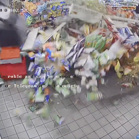 Банкомат пронесся по проходам между стеллажами, опрокидывая полки со снеками, и вылетел на улицу. Однако водитель внедорожника потерял управление и врезался в другую машину.