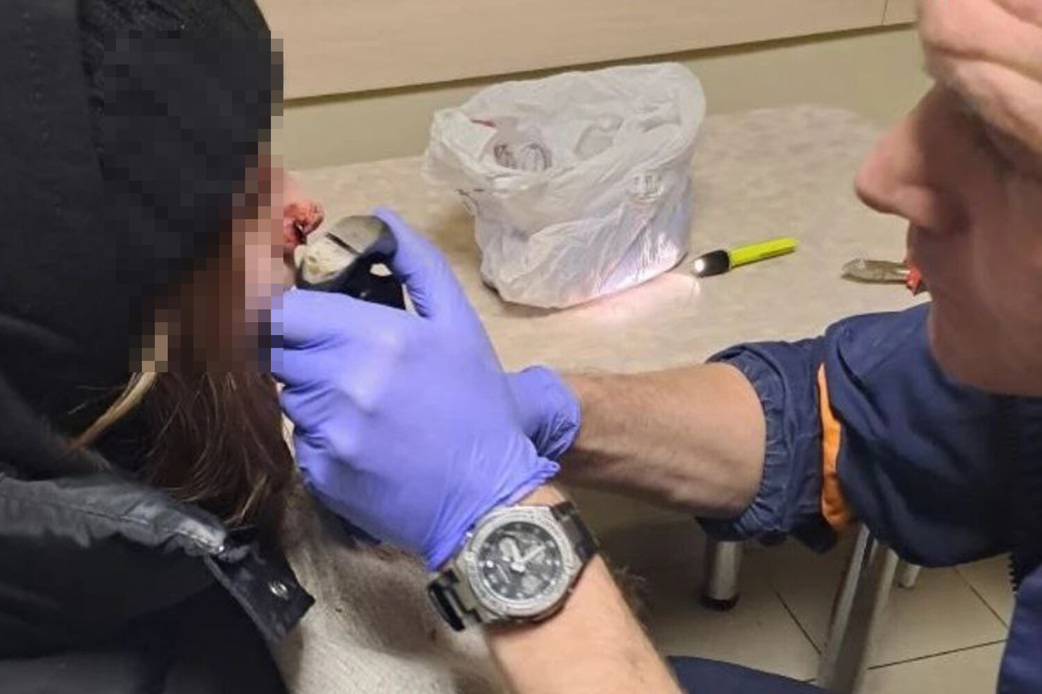 Родители школьницы обратились к сотрудникам экстренных служб, чтобы те помогли им снять пирсинг девочки — самостоятельно это сделать у них не получилось. Место прокола кровоточило, а застежка кольца заклинила, доставляя ребенку боль.