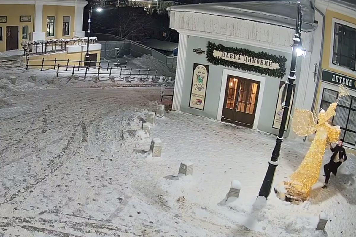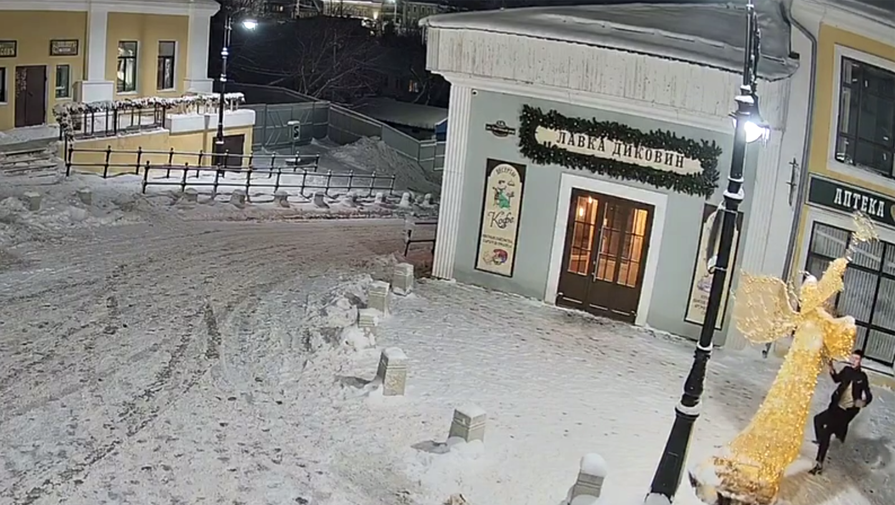 На записи видно, как юноша отделяется от компании сверстников и подходит к фигуре ангела с праздничной иллюминацией. Далее он взялся за конструкцию и опрокинул ее на землю.