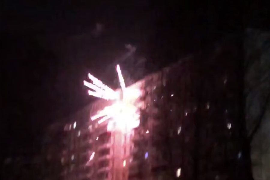 В Новокузнецке жители обстреляли фейерверками многоэтажный жилой дом в Новоильинском районе. Видео опубликовал Telegram-канал «Новости Кузбасса».
