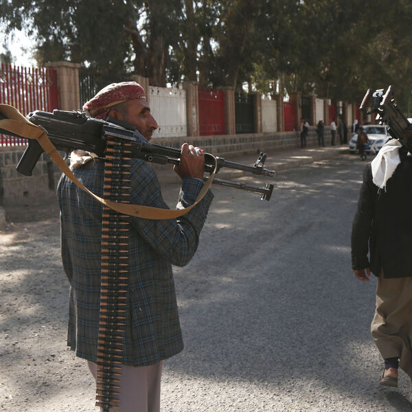 На кадрах запечатлена группа людей в масках с огнестрельным оружием в руках.