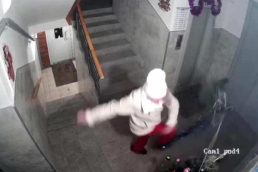 Инцидент произошел в одном из домов на улице Добровольского. Согласно видеозаписи с камеры наблюдения, опубликованной в местных пабликах, женщина, спускаясь по лестнице пнула наряженную новогоднюю елку на лестничной площадке. Ее не остановила даже видеокамера, установленная в подъезде.