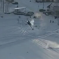 На обнародованных кадрах можно заметить, что небольшой вертолет низко пролетал над горнолыжным курортом и зацепился за тросы над канатной дорогой, а затем разбился о снежный покров. На кадрах видно, что хвост воздушного судна был разломан.