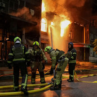 По словам градоначальника, еще один удар пришелся на жилой дом, в котором также началось возгорание на нижних этажах.