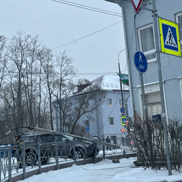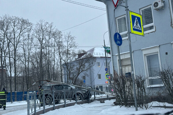 В Ленобласти фонарный столб рухнул на автомобиль