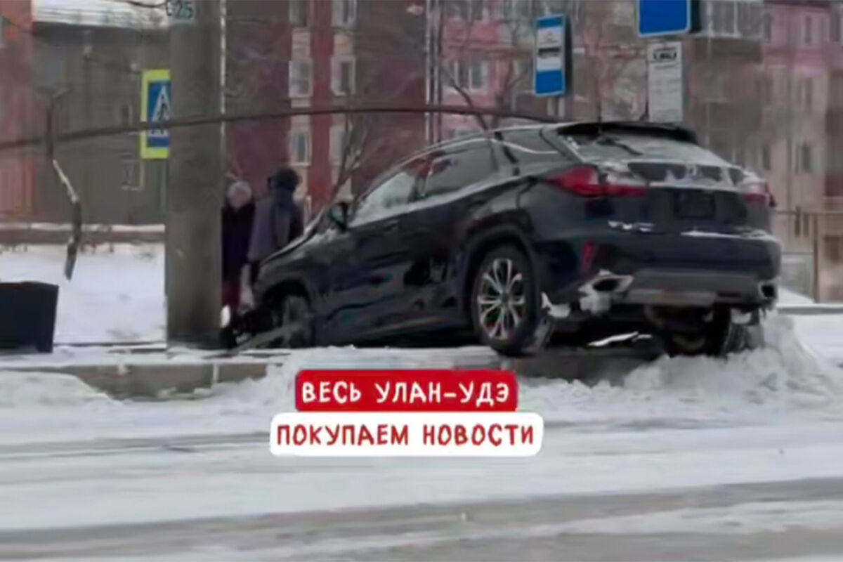 В Улан-Удэ автомобиль врезался в трамвайную остановку