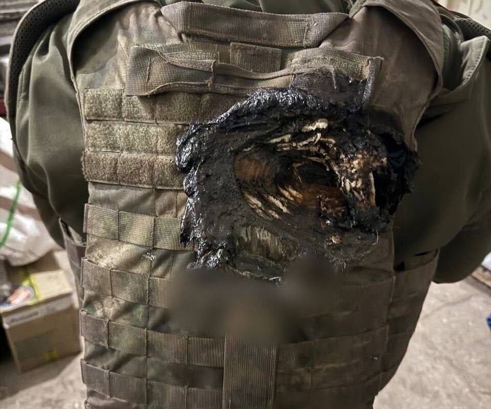 Мать бойца в самом начале его службы, два года назад, подарила ему бронежилет — именно он спас мужчину от взрыва снаряда, который разорвался прямо за его спиной. На фото видно, что несколько слоев бронежилета оказались повреждены, однако военный остался жив.