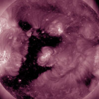 На Солнце ученые заметили крупную корональную дыру, напоминающую перевернутую цифру 1. Об этом сообщили в Лаборатория солнечной астрономии Института космических исследований (ИКИ) РАН.