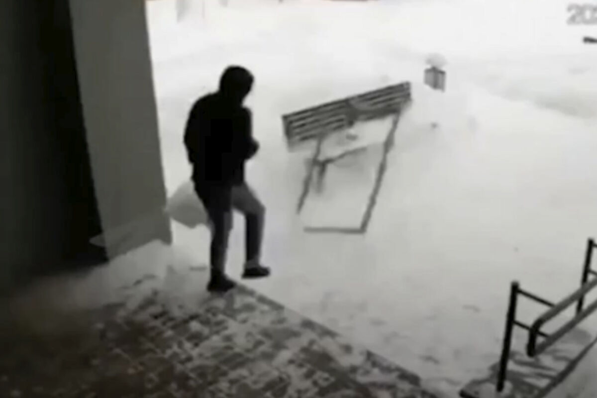 На кадрах с камеры видеонаблюдения мужчина, выходящий из подъезда жилого дома, на несколько секунд задержался, чтобы придержать дверь входящей в подъезд женщине. Это спасло его от оконной рамы, которая упала к его ногам, как только он собирался выйти за пределы подъезда. Шокированный мужчина растерянно обернулся на дверь подъезда. Возможно, удар пришелся бы по женщине, если бы она не поспешила к закрывающейся двери.