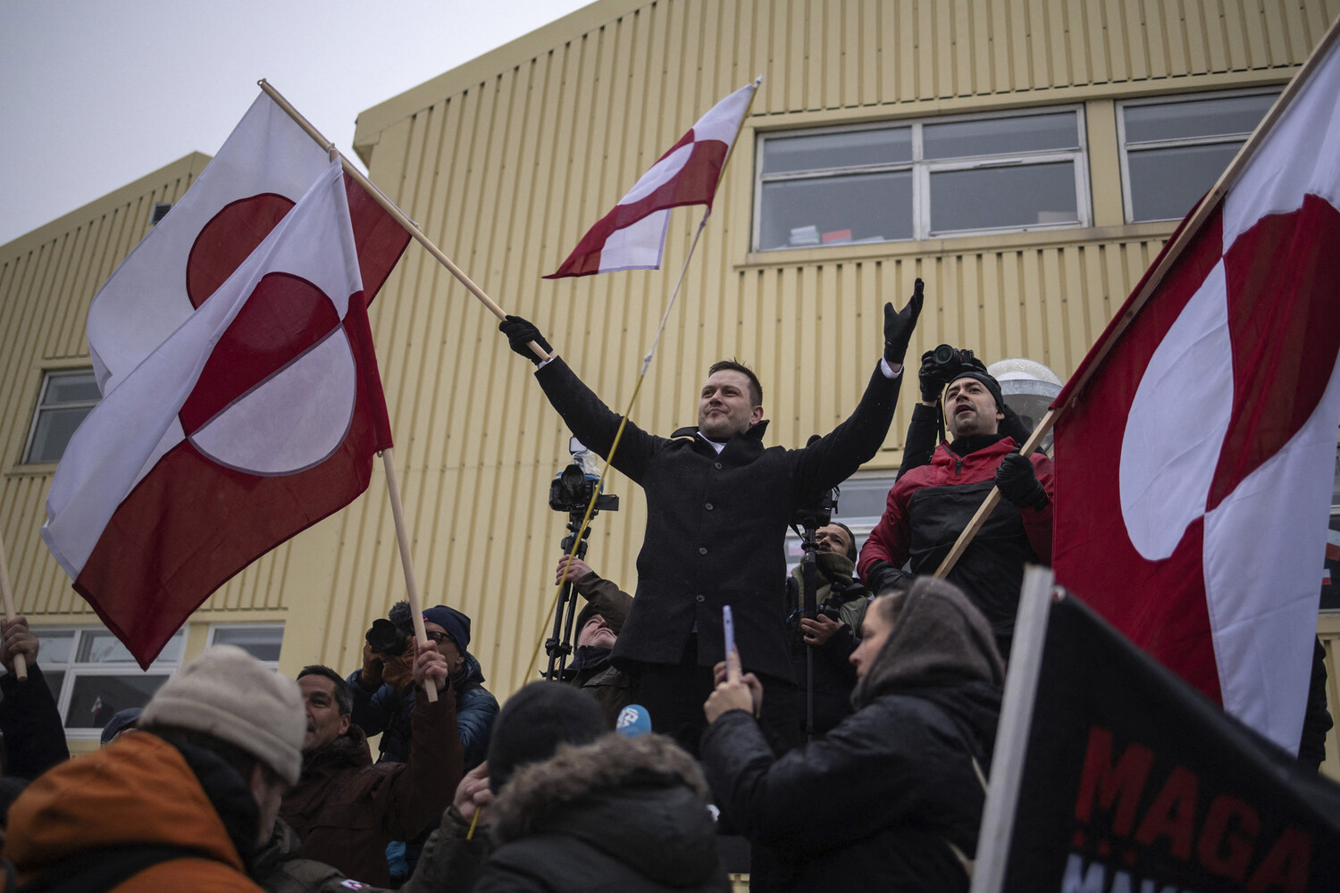 Жители привели на митинги своих детей. Они держали в руках красно-белые флаги и плакаты «Гренландия не продается». К протестующим также присоединился премьер-министр Гренландии Йенс-Фредерик Нильсен.